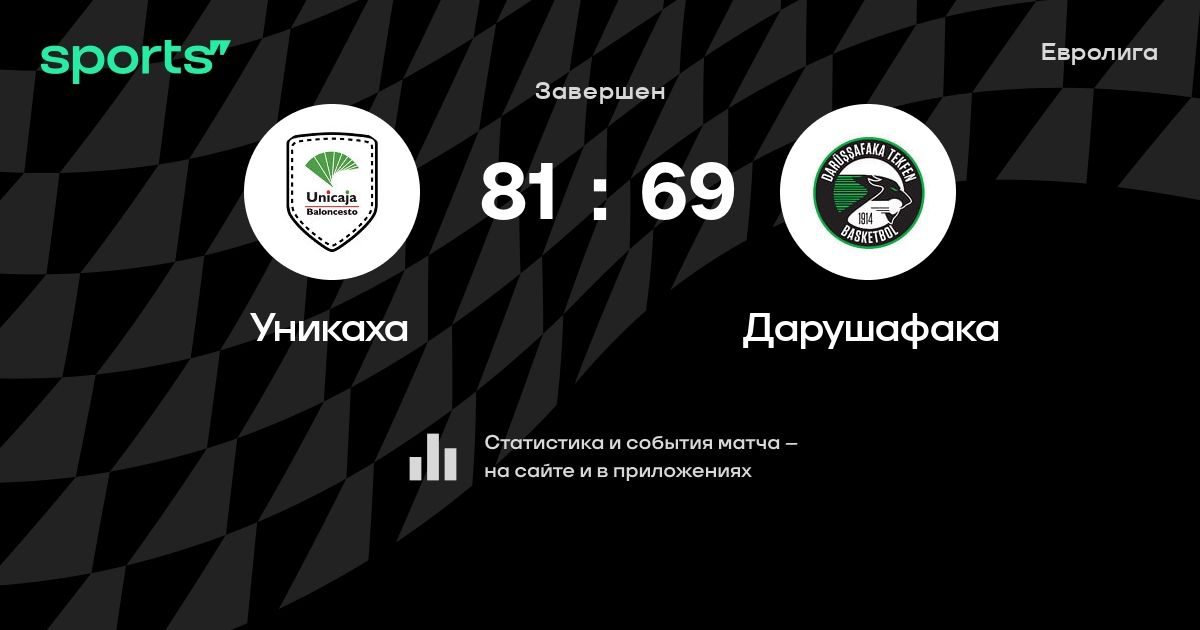 В прошедшем матче в рамках турнира Евролига (Группа D) состоялась встреча команд Уникаха - Дарушафака в городе Малага (Испания) на стадионе Паласио де Депортес де Малага (вместимость - 10500)