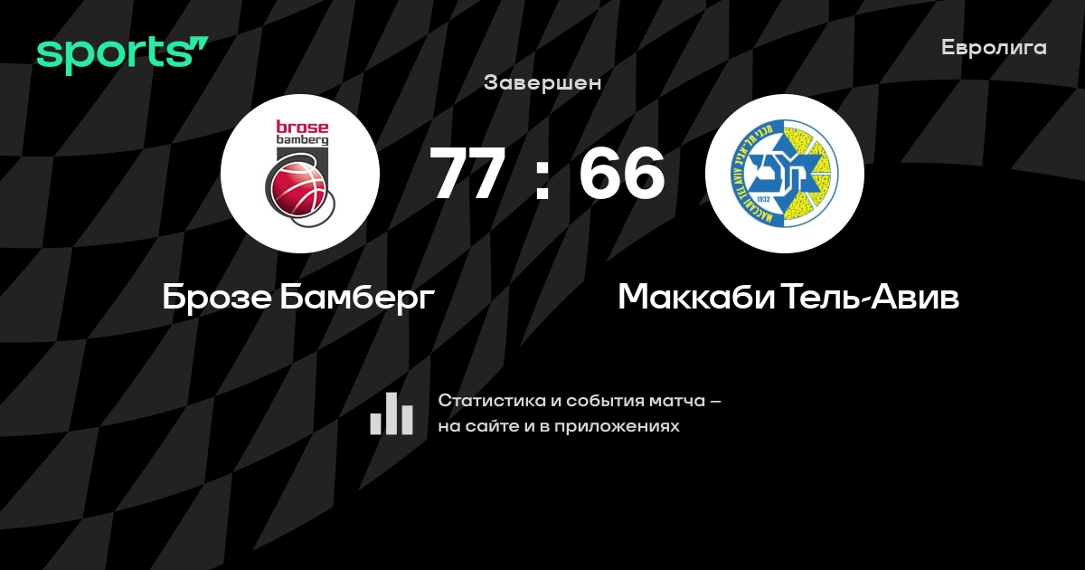 В прошедшем матче в рамках турнира Евролига (Группа D) состоялась встреча команд Брозе Бамберг - Маккаби Тель-Авив в городе Бамберг (Германия) на стадионе Брозе Арена (вместимость - 6800)