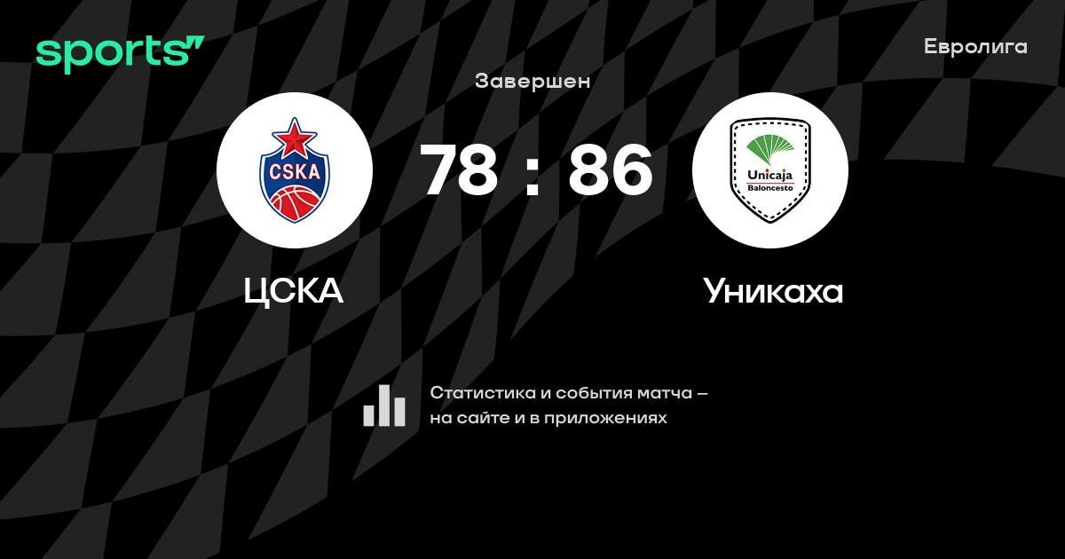В прошедшем матче в рамках турнира Евролига (Группа D) состоялась встреча команд ЦСКА - Уникаха в городе Москва (Россия) на стадионе УСК ЦСКА им. А.Я. Гомельского (вместимость - 4500)