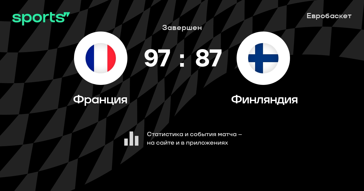 В прошедшем матче в рамках турнира Евробаскет (Групповой этап. 1 тур) состоялась встреча команд Франция - Финляндия в городе Монпелье (Франция) на стадионе Парк-энд-Сьютс Арена (вместимость - 10700)