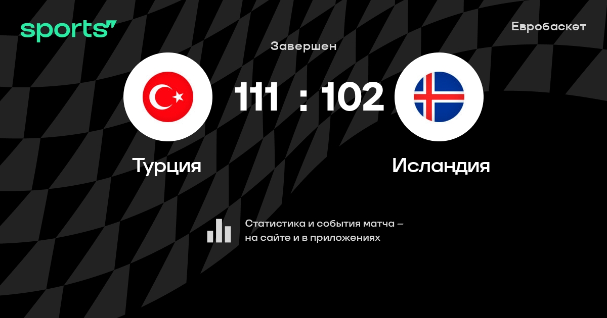 В прошедшем матче в рамках турнира Евробаскет (Групповой этап. 5 тур) состоялась встреча команд Турция - Исландия в городе Берлин (Германия) на стадионе Убер Арена (вместимость - 16000)