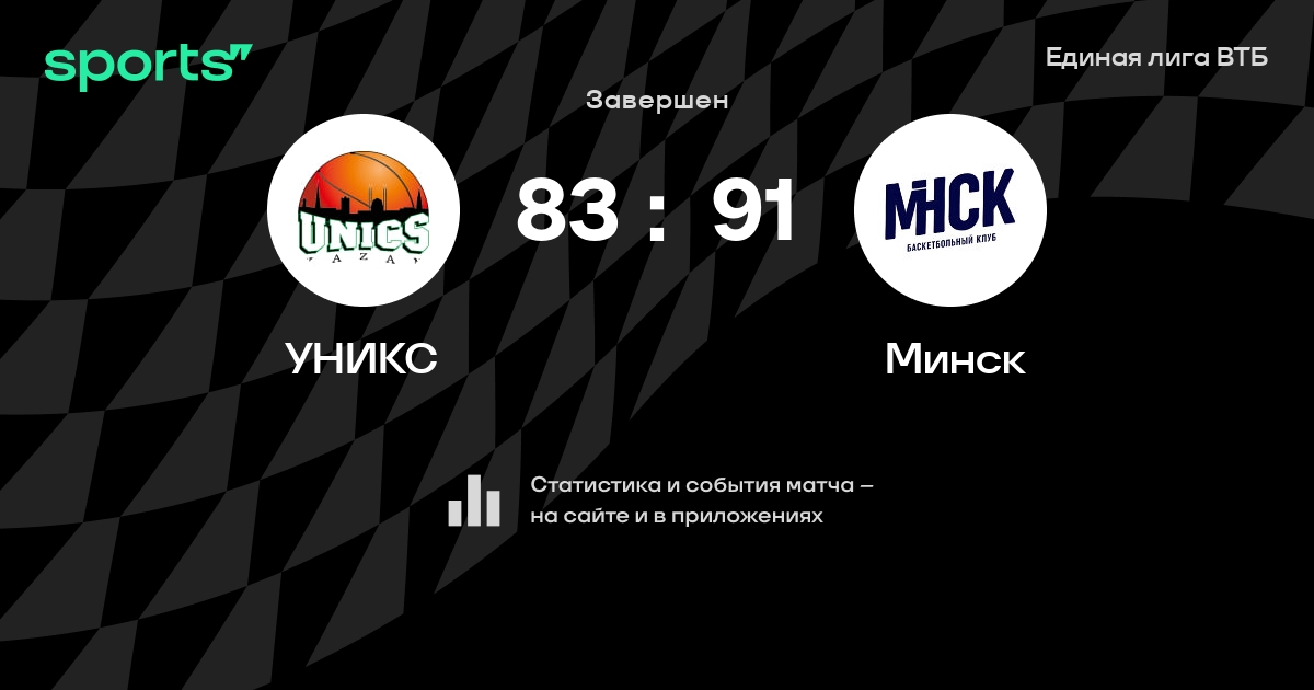 В прошедшем матче в рамках турнира Единая лига ВТБ состоялась встреча команд УНИКС - Минск в городе Казань (Россия) на стадионе Баскет-холл (вместимость - 7000)