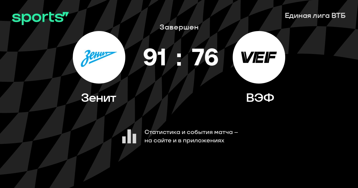 В прошедшем матче в рамках турнира Единая лига ВТБ состоялась встреча команд Зенит - ВЭФ в городе Санкт-Петербург (Россия) на стадионе КСК Арена (вместимость - 7120)