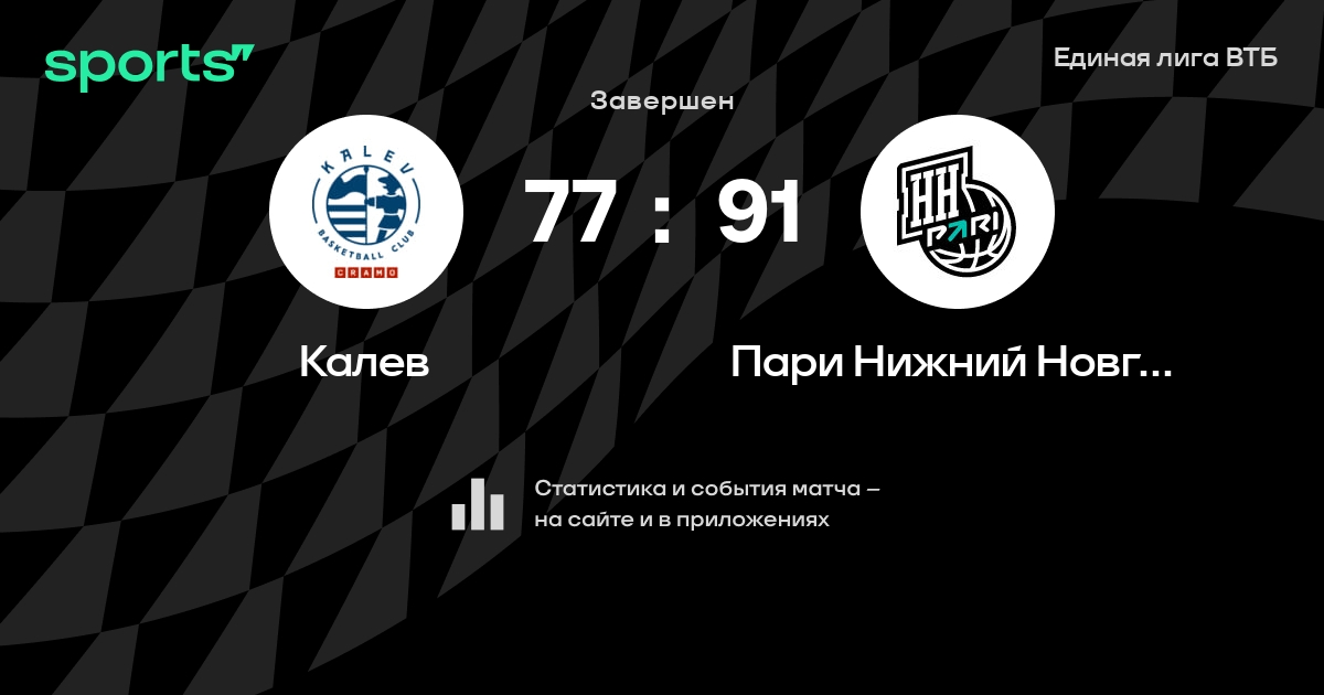 В прошедшем матче в рамках турнира Единая лига ВТБ состоялась встреча команд Калев - Пари Нижний Новгород в городе Tallinn на стадионе Kalevi Spordihall