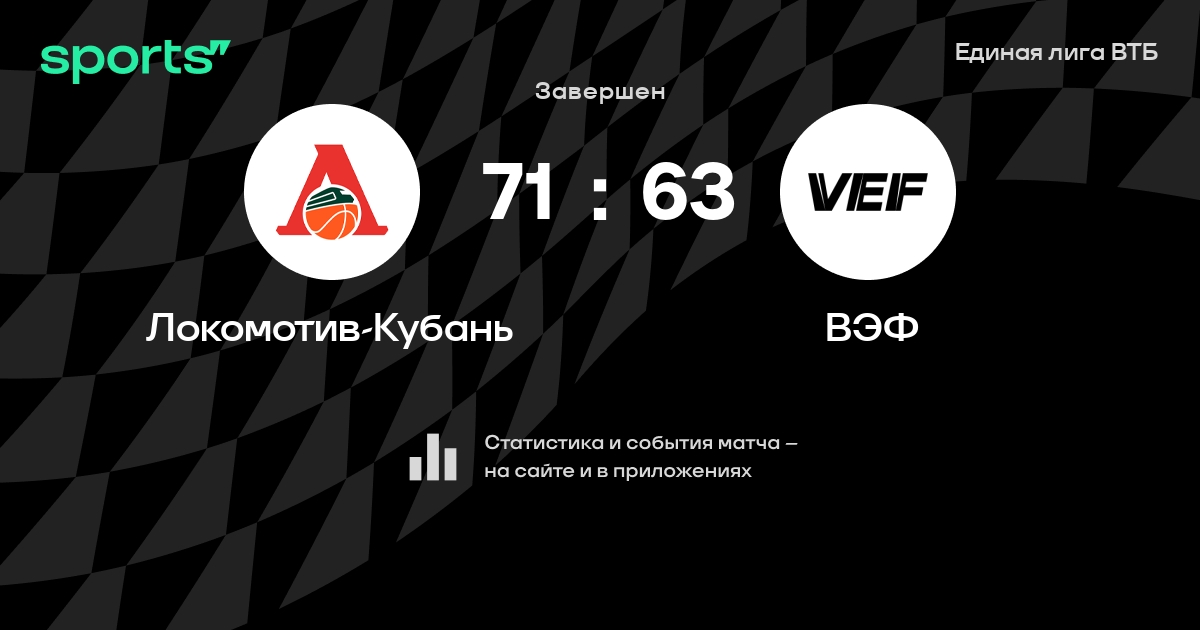 В прошедшем матче в рамках турнира Единая лига ВТБ состоялась встреча команд Локомотив-Кубань - ВЭФ в городе Краснодар (Россия) на стадионе Баскет-холл (вместимость - 7000)