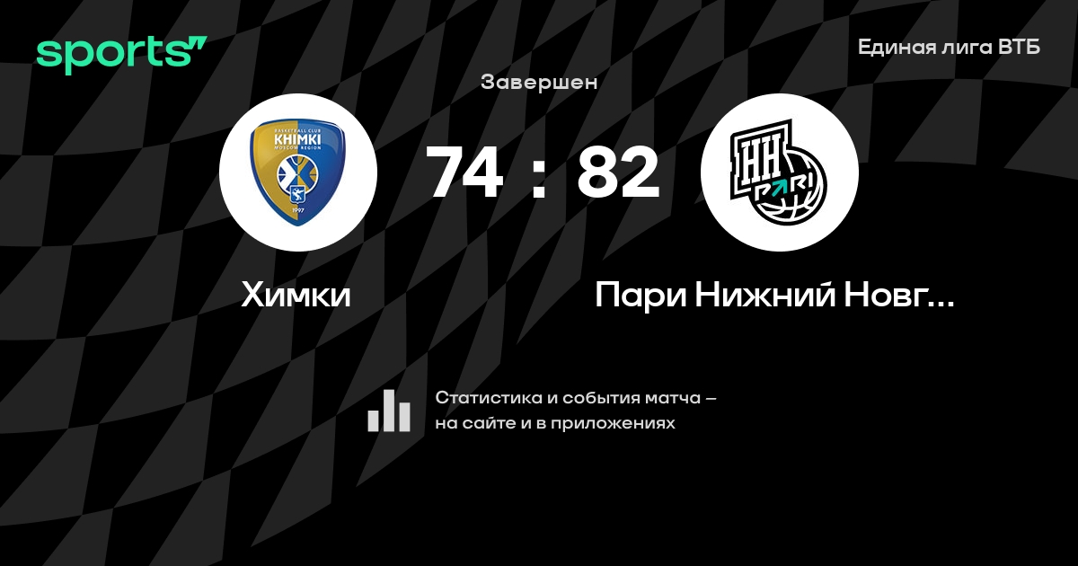 В прошедшем матче в рамках турнира Единая лига ВТБ состоялась встреча команд Химки - Пари Нижний Новгород в городе Химки (Россия) на стадионе Баскетбольный центр Химки (вместимость - 3500)