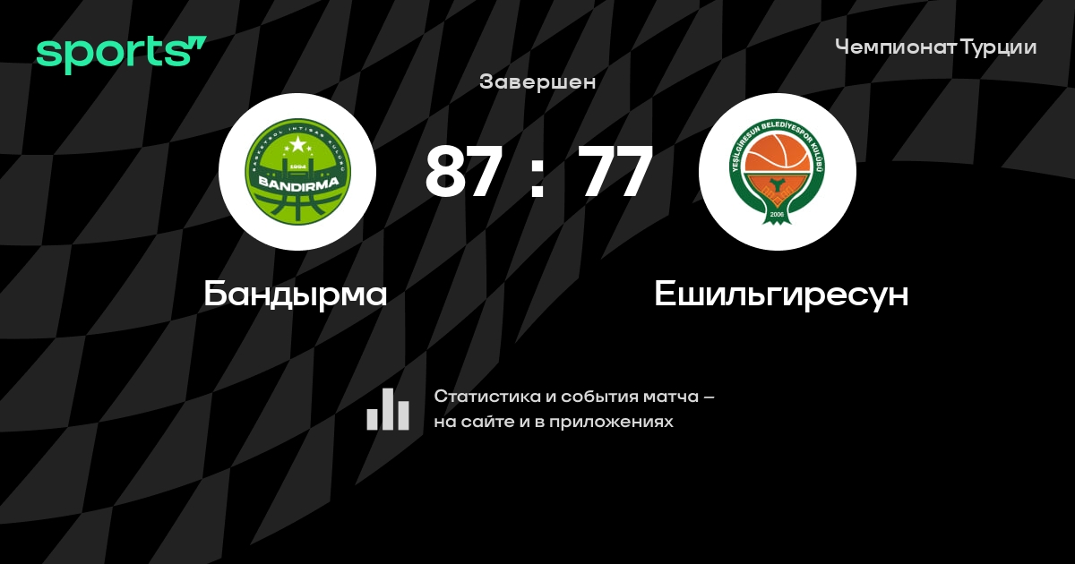 В прошедшем матче в рамках турнира Чемпионат Турции состоялась встреча команд Бандырма - Ешильгиресун в городе Balikesir на стадионе Kara Ali Acar Spor Salonu