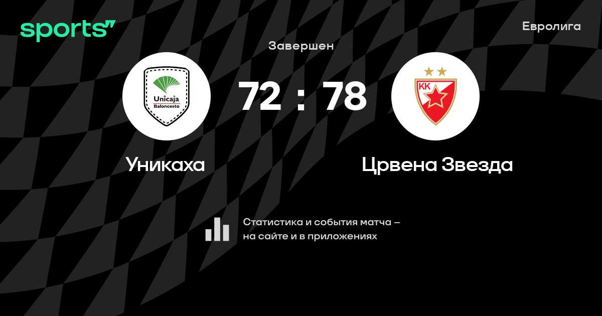 В прошедшем матче в рамках турнира Евролига (Топ-16. 11 тур) состоялась встреча команд Уникаха - Црвена Звезда в городе Малага (Испания) на стадионе Паласио де Депортес де Малага (вместимость - 10500)