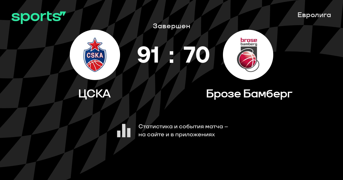 В прошедшем матче в рамках турнира Евролига (Топ-16. 5 тур) состоялась встреча команд ЦСКА - Брозе Бамберг в городе Москва (Россия) на стадионе Мегаспорт (вместимость - 13126)