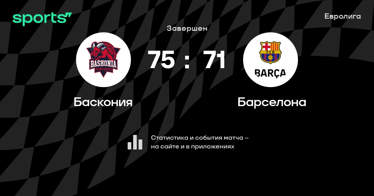 В прошедшем матче в рамках турнира Евролига (Топ-16. 12 тур) состоялась встреча команд Баскония - Барселона в городе Витория (Испания) на стадионе Фернандо Буэса Арена (вместимость - 9717)