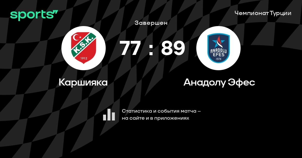 В прошедшем матче в рамках турнира Чемпионат Турции состоялась встреча команд Каршияка - Анадолу Эфес в городе Измир (Турция) на стадионе Каршияка Арена (вместимость - 6500)