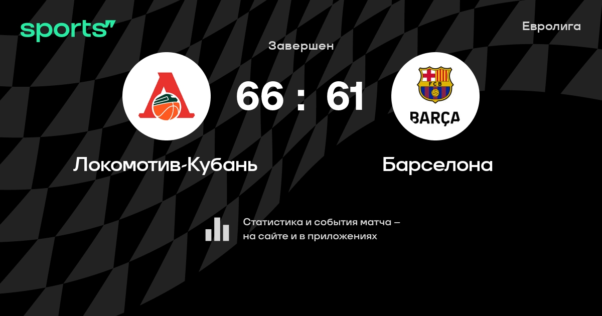 В прошедшем матче в рамках турнира Евролига (Четвертьфинал) состоялась встреча команд Локомотив-Кубань - Барселона в городе Краснодар (Россия) на стадионе Баскет-холл (вместимость - 7000)