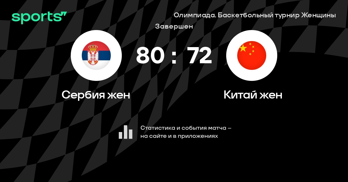 В прошедшем матче в рамках турнира Олимпиада. Баскетбольный турнир Женщины состоялась встреча команд Сербия жен - Китай жен в городе Rio de Janeiro на стадионе Youth Arena