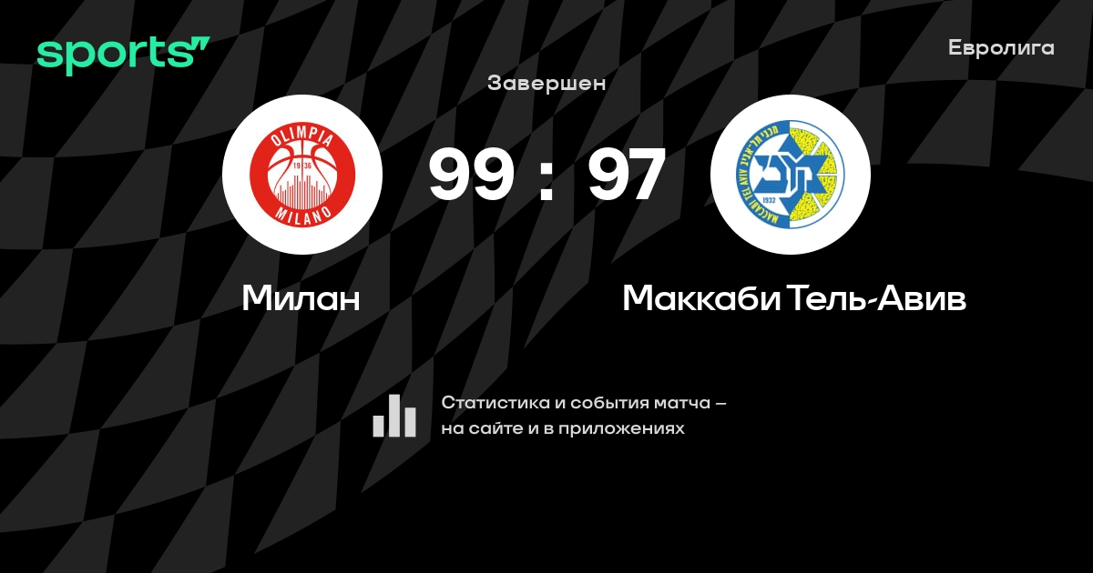 В прошедшем матче в рамках турнира Евролига состоялась встреча команд Милан - Маккаби Тель-Авив в городе Ассаго (Италия) на стадионе Униполь Форум (вместимость - 11200)