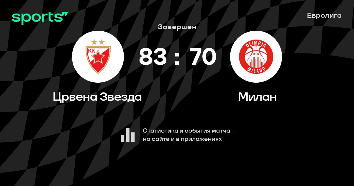 В прошедшем матче в рамках турнира Евролига состоялась встреча команд Црвена Звезда - Милан в городе Белград (Сербия) на стадионе Белград Арена (вместимость - 22386)