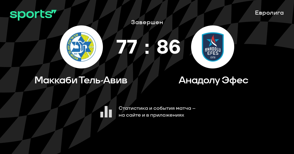 В прошедшем матче в рамках турнира Евролига состоялась встреча команд Маккаби Тель-Авив - Анадолу Эфес в городе Тель-Авив (Израиль) на стадионе Менора-Мивтахим Арена (вместимость - 11700)