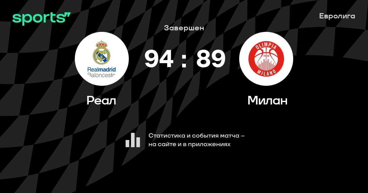 В прошедшем матче в рамках турнира Евролига состоялась встреча команд Реал - Милан в городе Мадрид (Испания) на стадионе Мовистар Арена (вместимость - 15000)