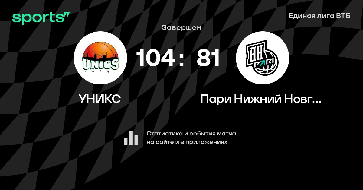 В прошедшем матче в рамках турнира Единая лига ВТБ состоялась встреча команд УНИКС - Пари Нижний Новгород в городе Казань (Россия) на стадионе Баскет-холл (вместимость - 7000)