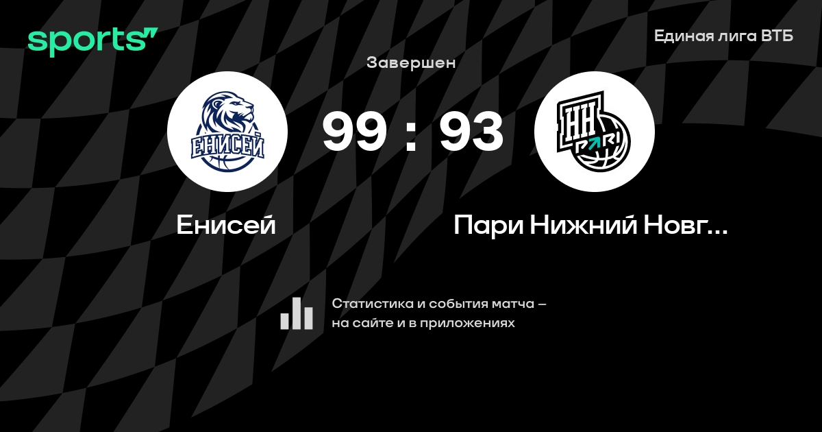 В прошедшем матче в рамках турнира Единая лига ВТБ состоялась встреча команд Енисей - Пари Нижний Новгород в городе Красноярск (Россия) на стадионе Арена-Север
