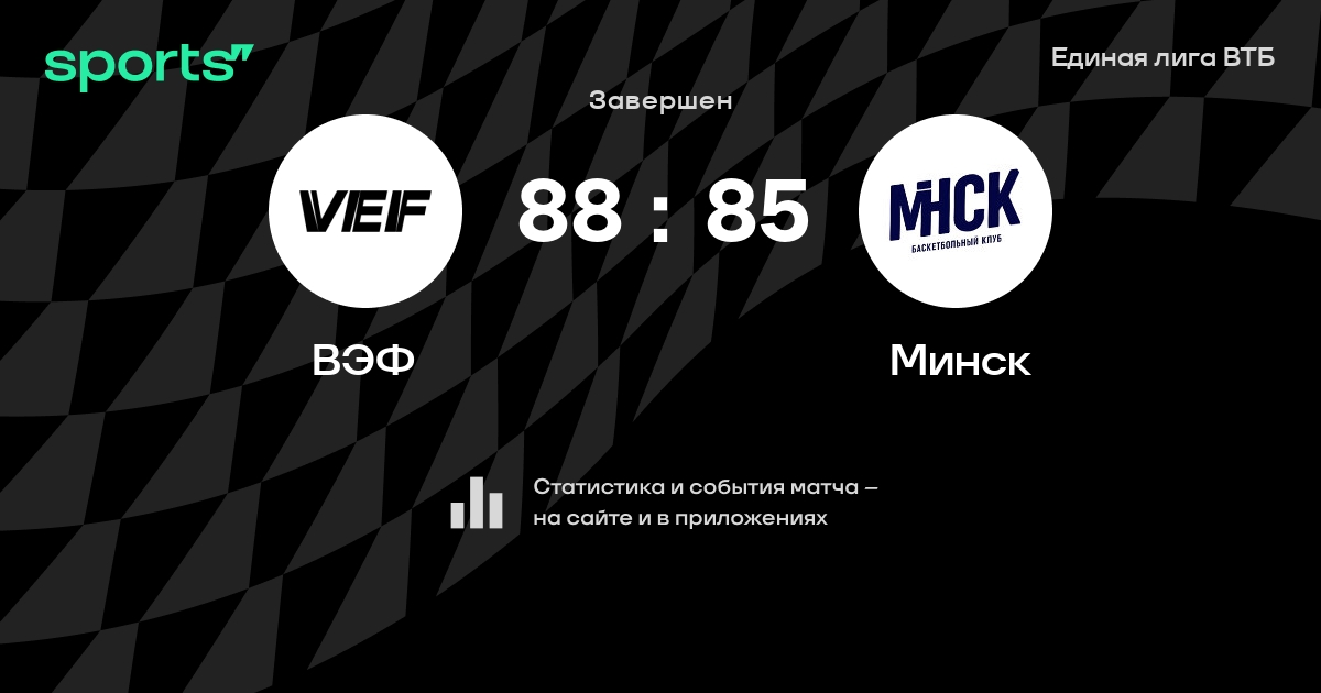 В прошедшем матче в рамках турнира Единая лига ВТБ состоялась встреча команд ВЭФ - Минск в городе Рига (Латвия) на стадионе Олимпийский спортивный центр (вместимость - 2500)
