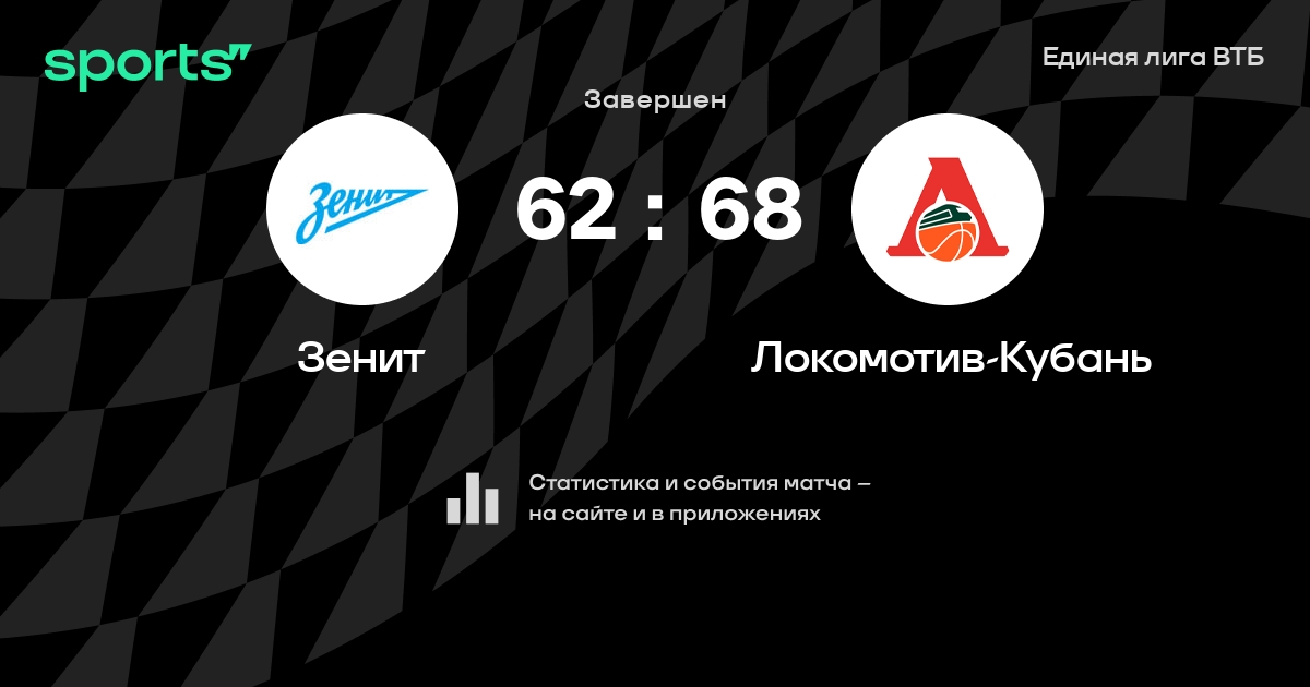 В прошедшем матче в рамках турнира Единая лига ВТБ состоялась встреча команд Зенит - Локомотив-Кубань в городе Санкт-Петербург (Россия) на стадионе СК Юбилейный