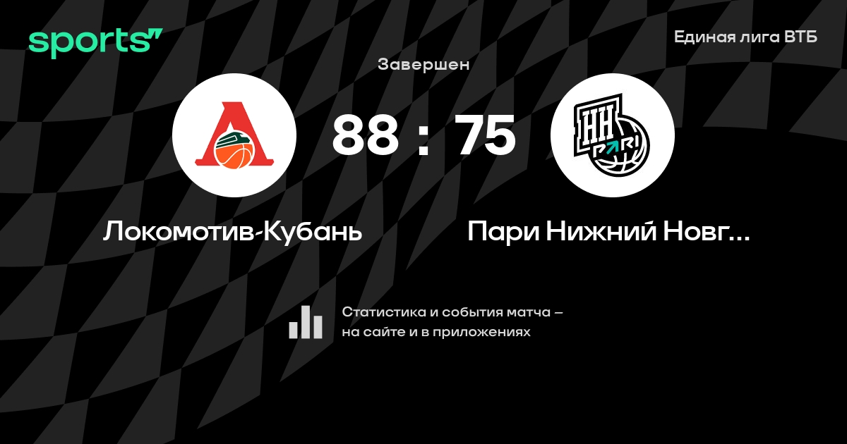 В прошедшем матче в рамках турнира Единая лига ВТБ состоялась встреча команд Локомотив-Кубань - Пари Нижний Новгород в городе Краснодар (Россия) на стадионе Баскет-холл (вместимость - 7000)