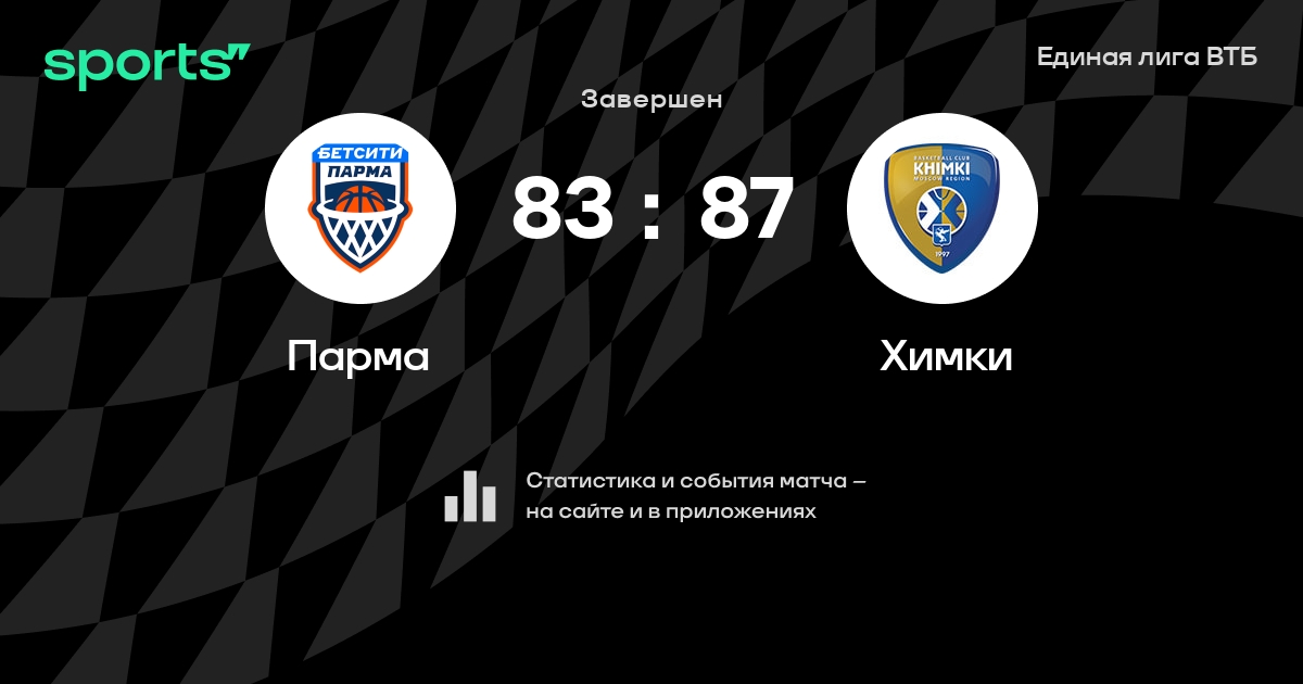 В прошедшем матче в рамках турнира Единая лига ВТБ состоялась встреча команд Парма - Химки в городе Пермь (Россия) на стадионе УДС Молот (вместимость - 7000)