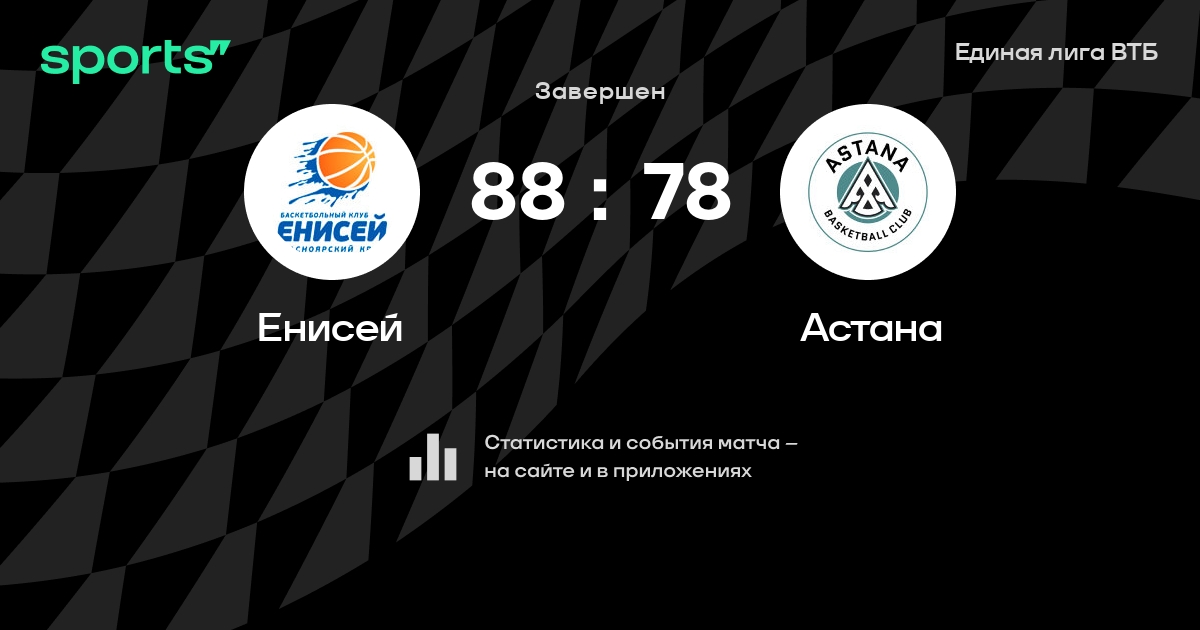 В прошедшем матче в рамках турнира Единая лига ВТБ состоялась встреча команд Енисей - Астана в городе Красноярск (Россия) на стадионе Арена-Север