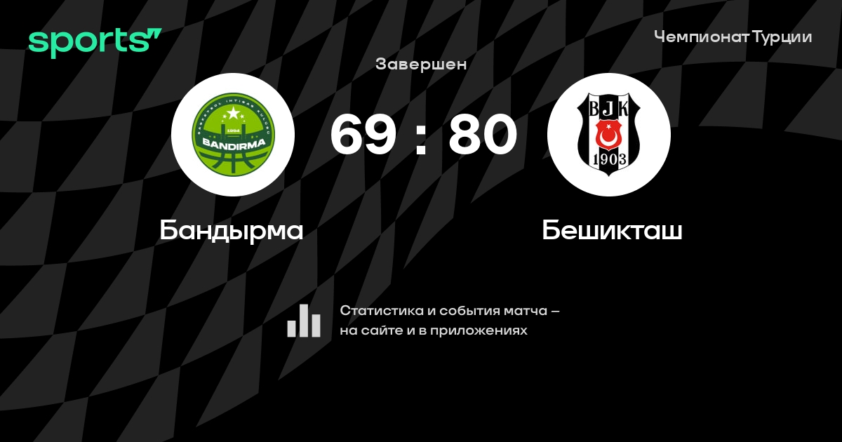 В прошедшем матче в рамках турнира Чемпионат Турции состоялась встреча команд Бандырма - Бешикташ в городе Balikesir на стадионе Kara Ali Acar Spor Salonu