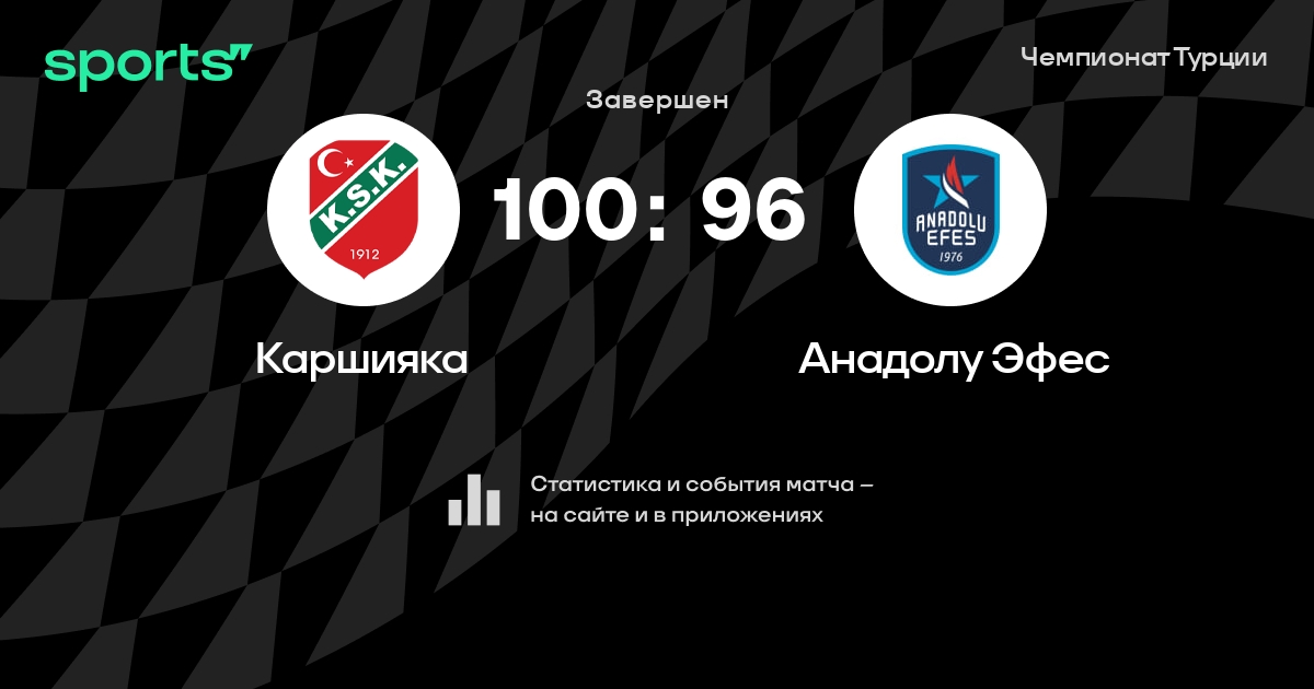 В прошедшем матче в рамках турнира Чемпионат Турции состоялась встреча команд Каршияка - Анадолу Эфес в городе Измир (Турция) на стадионе Каршияка Арена (вместимость - 6500)