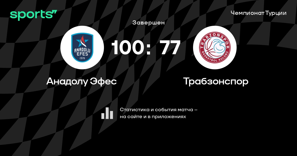 В прошедшем матче в рамках турнира Чемпионат Турции состоялась встреча команд Анадолу Эфес - Трабзонспор в городе Стамбул (Турция) на стадионе Абди Ипекчи Арена (вместимость - 12500)