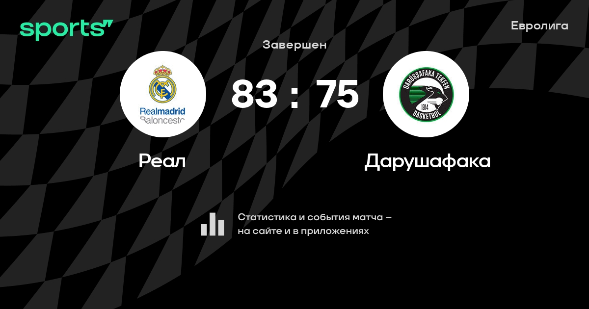 В прошедшем матче в рамках турнира Евролига (Четвертьфинал) состоялась встреча команд Реал - Дарушафака в городе Мадрид (Испания) на стадионе Мовистар Арена (вместимость - 15000)