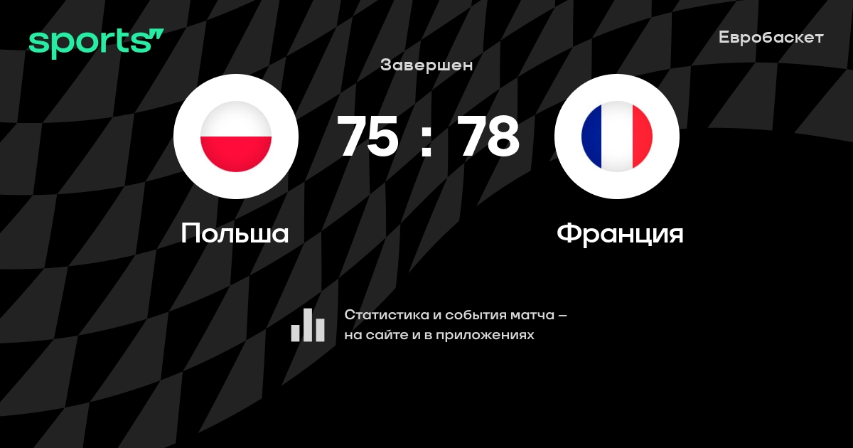 В прошедшем матче в рамках турнира Евробаскет состоялась встреча команд Польша - Франция в городе Хельсинки (Финляндия) на стадионе Хартвалл-Арена