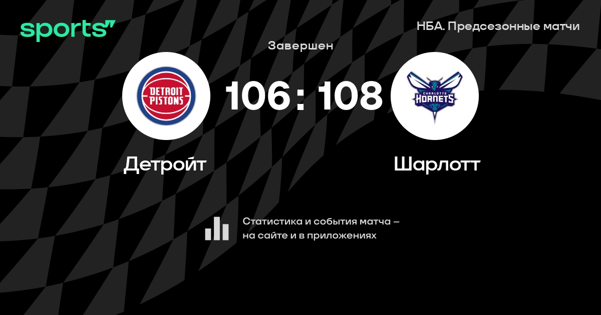 В прошедшем матче в рамках турнира НБА. Предсезонные матчи состоялась встреча команд Детройт - Шарлотт в городе Детройт (США) на стадионе Little Caesars Arena (вместимость - 20332)