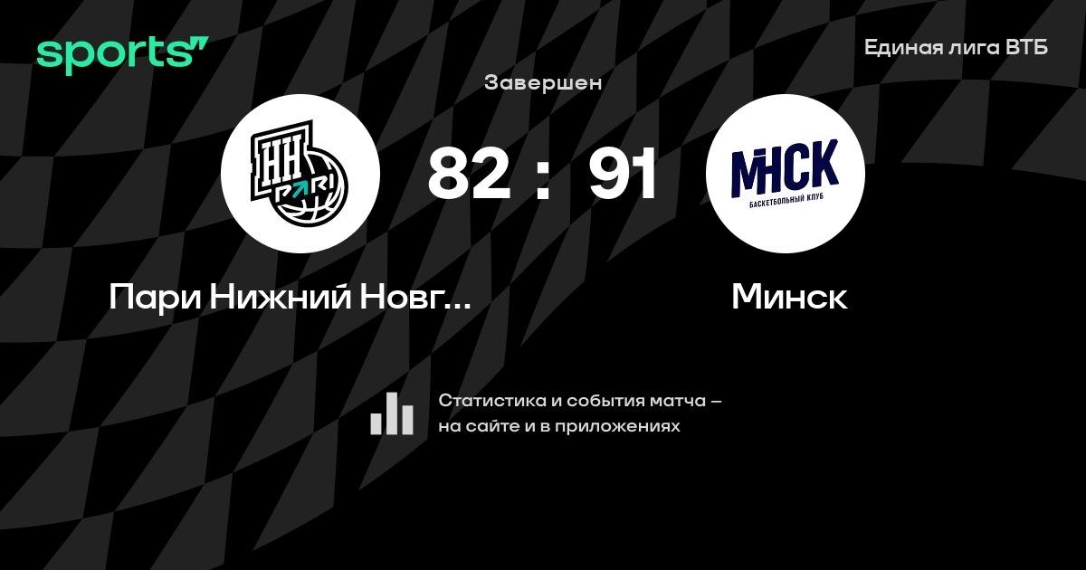 В прошедшем матче в рамках турнира Единая лига ВТБ состоялась встреча команд Пари Нижний Новгород - Минск в городе Нижний Новгород (Россия) на стадионе КРК Нагорный (вместимость - 5600)