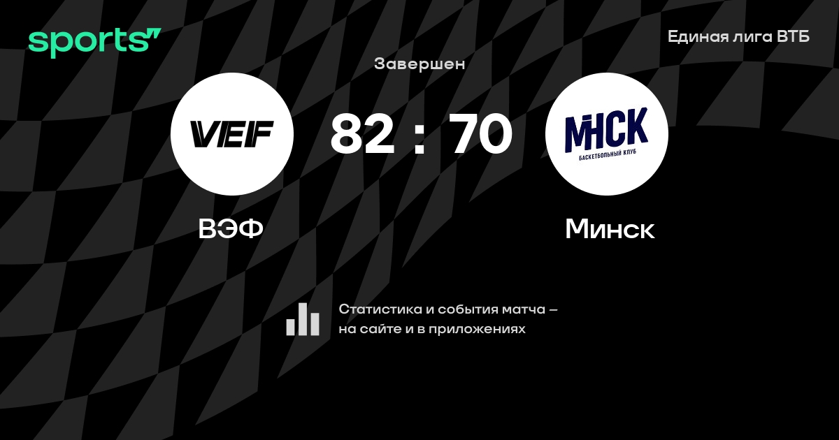 В прошедшем матче в рамках турнира Единая лига ВТБ состоялась встреча команд ВЭФ - Минск в городе Рига (Латвия) на стадионе Арена Рига (вместимость - 10300)