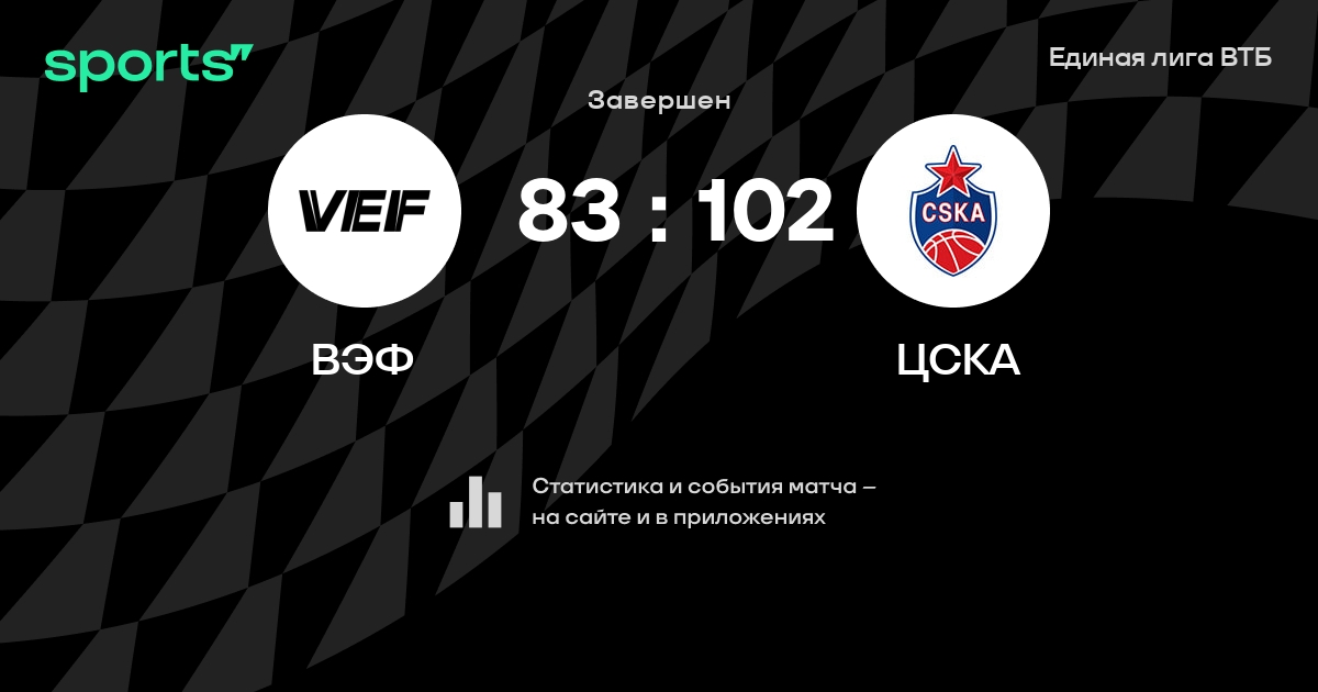 В прошедшем матче в рамках турнира Единая лига ВТБ состоялась встреча команд ВЭФ - ЦСКА в городе Рига (Латвия) на стадионе Арена Рига (вместимость - 10300)