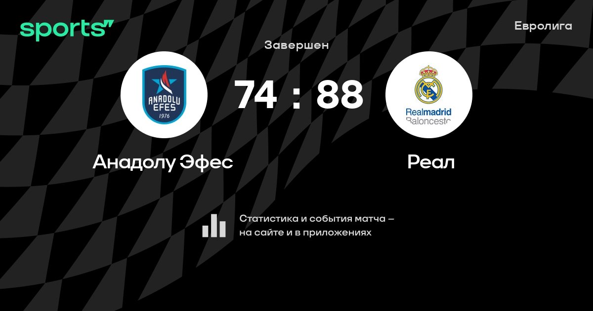 Как прошел матч, смотрите в текстовой трансляции Анадолу Эфес - Реал на Sports.ru