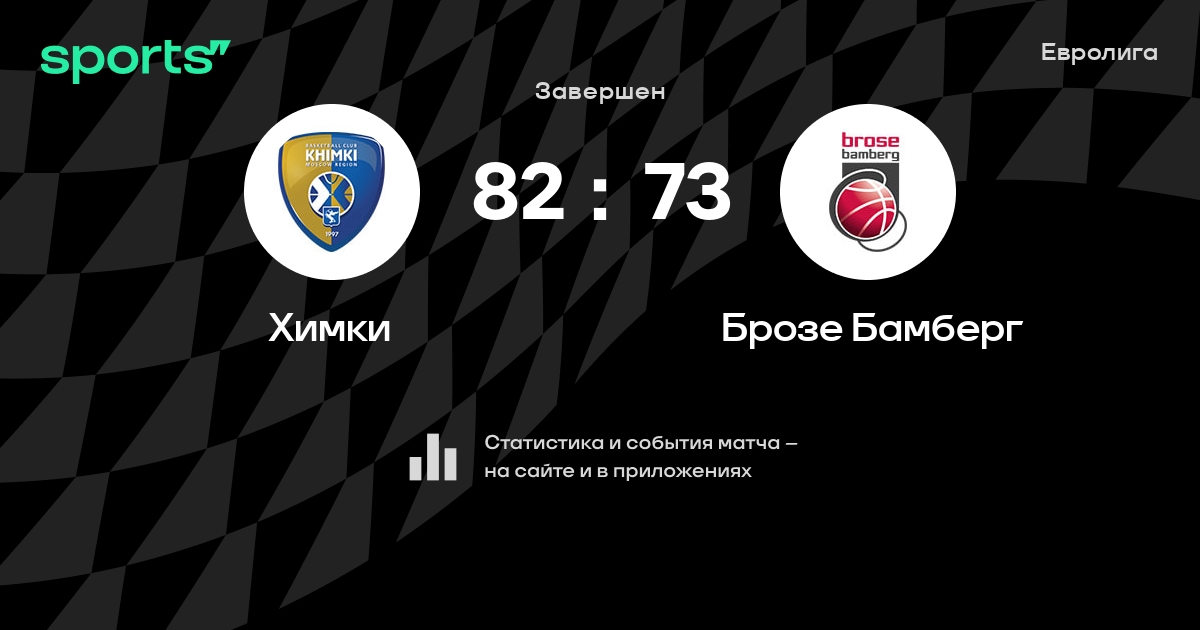 В прошедшем матче в рамках турнира Евролига состоялась встреча команд Химки - Брозе Бамберг в городе Москва (Россия) на стадионе Арена Мытищи (вместимость - 8000)