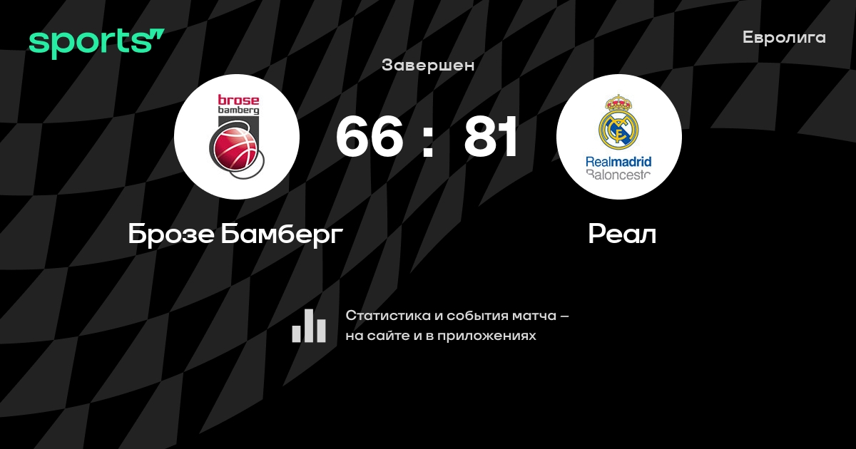 В прошедшем матче в рамках турнира Евролига состоялась встреча команд Брозе Бамберг - Реал в городе Бамберг (Германия) на стадионе Брозе Арена (вместимость - 6800)