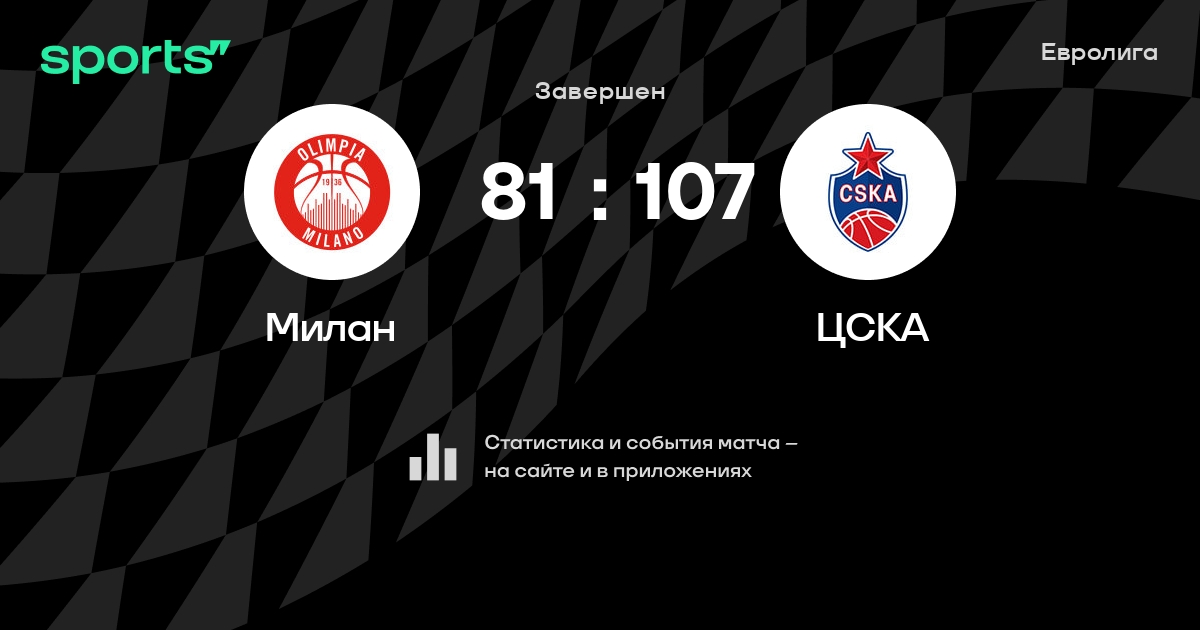 В прошедшем матче в рамках турнира Евролига состоялась встреча команд Милан - ЦСКА в городе Ассаго (Италия) на стадионе Униполь Форум (вместимость - 11200)