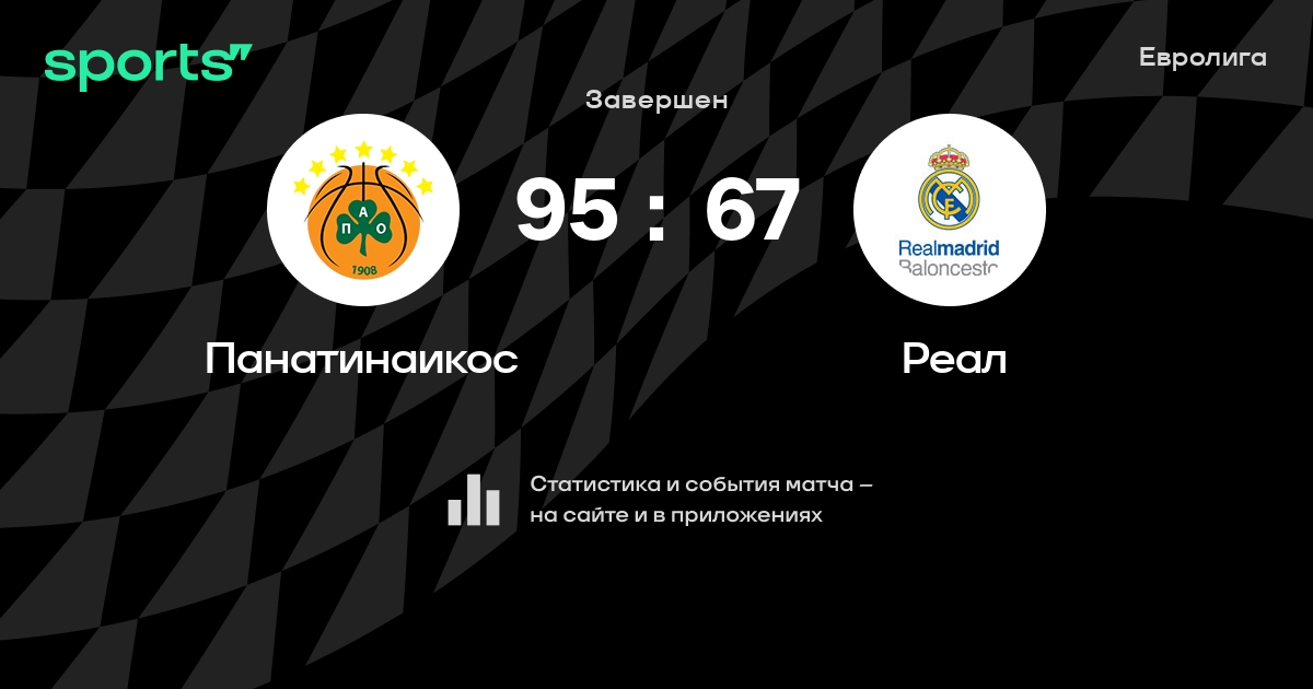 В прошедшем матче в рамках турнира Евролига (Четвертьфинал) состоялась встреча команд Панатинаикос - Реал в городе Афины (Греция) на стадионе Олимпийский спортивный центр (O.A.K.A.) (вместимость - 19250)