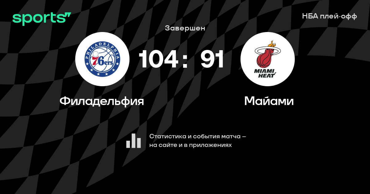 В прошедшем матче в рамках турнира НБА плей-офф (1-й раунд) состоялась встреча команд Филадельфия - Майами в городе Филадельфия (США) на стадионе Wells Fargo Center (вместимость - 19537)