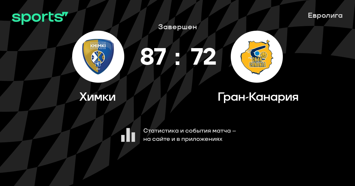 В прошедшем матче в рамках турнира Евролига состоялась встреча команд Химки - Гран-Канария в городе Москва (Россия) на стадионе Арена Мытищи (вместимость - 8000)