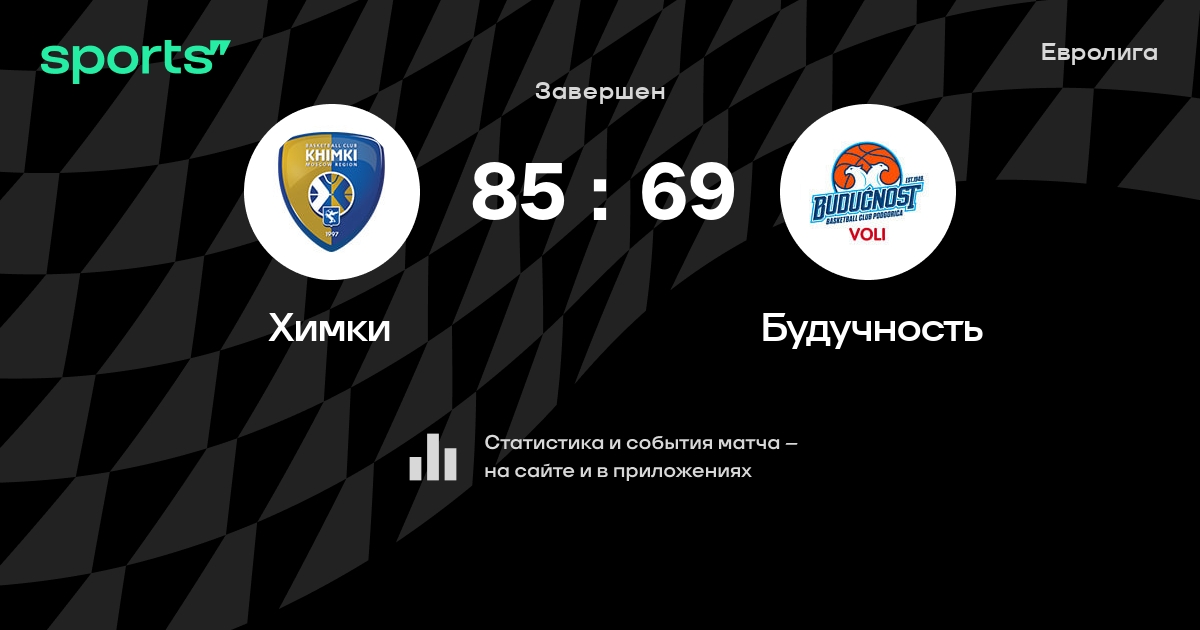 В прошедшем матче в рамках турнира Евролига состоялась встреча команд Химки - Будучность в городе Москва (Россия) на стадионе Арена Мытищи (вместимость - 8000)
