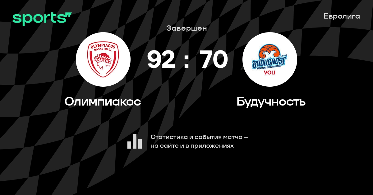 В прошедшем матче в рамках турнира Евролига состоялась встреча команд Олимпиакос - Будучность в городе Пирей (Греция) на стадионе Арена Мира и Дружбы (вместимость - 12171)