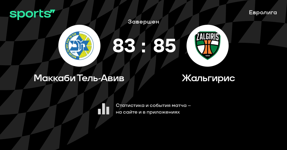 В прошедшем матче в рамках турнира Евролига состоялась встреча команд Маккаби Тель-Авив - Жальгирис в городе Тель-Авив (Израиль) на стадионе Менора-Мивтахим Арена (вместимость - 11700)
