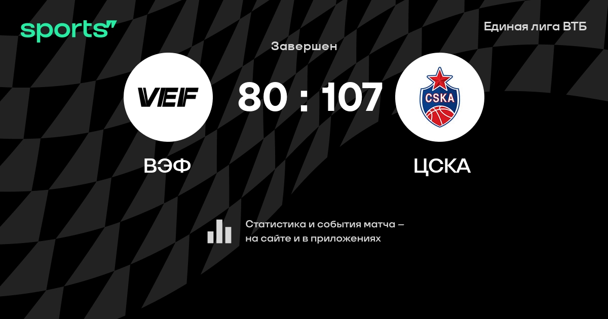 В прошедшем матче в рамках турнира Единая лига ВТБ состоялась встреча команд ВЭФ - ЦСКА в городе Рига (Латвия) на стадионе Арена Рига (вместимость - 10300)