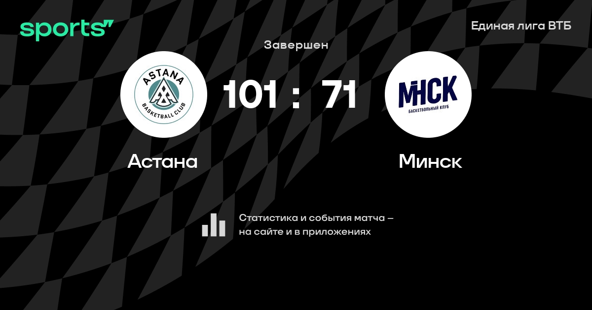 В прошедшем матче в рамках турнира Единая лига ВТБ состоялась встреча команд Астана - Минск в городе Нур-Султан (Казахстан) на стадионе Велотрек Сарыарка (вместимость - 8000)