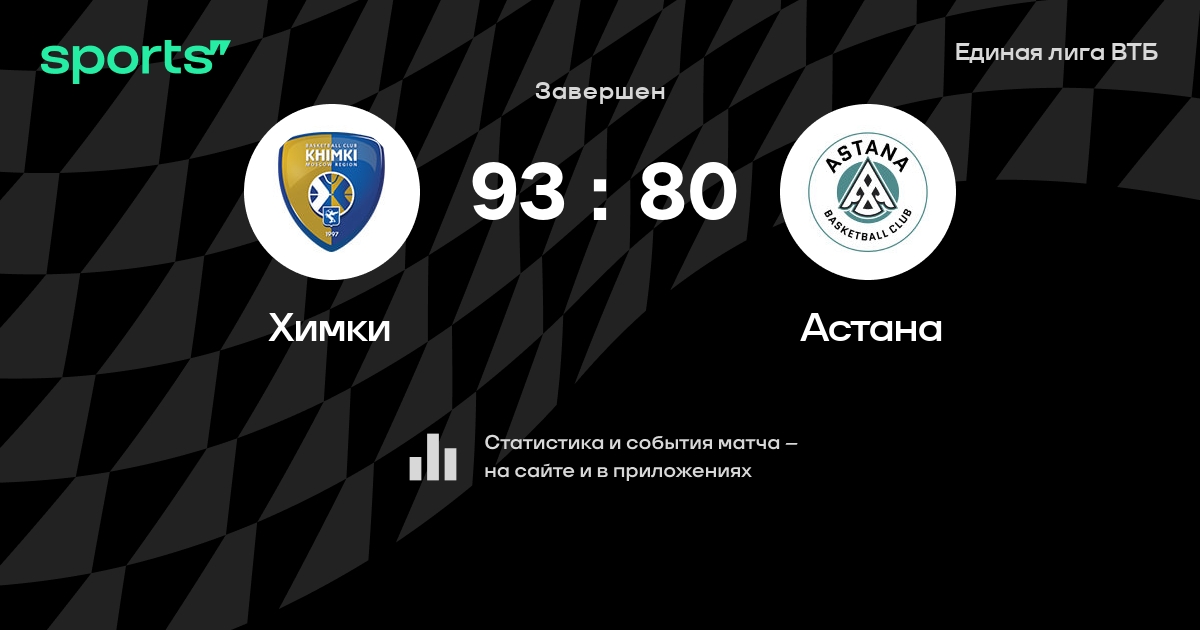 В прошедшем матче в рамках турнира Единая лига ВТБ состоялась встреча команд Химки - Астана в городе Химки (Россия) на стадионе Баскетбольный центр Химки (вместимость - 3500)
